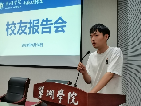 机械工程学院2022届机械专业毕业生、南京工程学院在读研究生徐闽海,机械工程学院2023届材控专业毕业生、安徽工业大学在读研究生熊李芳应邀做报告。