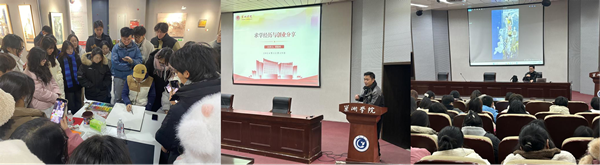 开幕式结束后,优秀校友朱建刚在艺术馆做了“水彩写生示范”,翟富军、刘向阳分别作了“求学经历与创业分享”“中国绘画的装饰美”的报告。同学们反响强烈,认为此次活动收获很大,既现场观摩了美术作品创作技法,也从学长们的求学经历与创业分享中获得了经验与启示。
