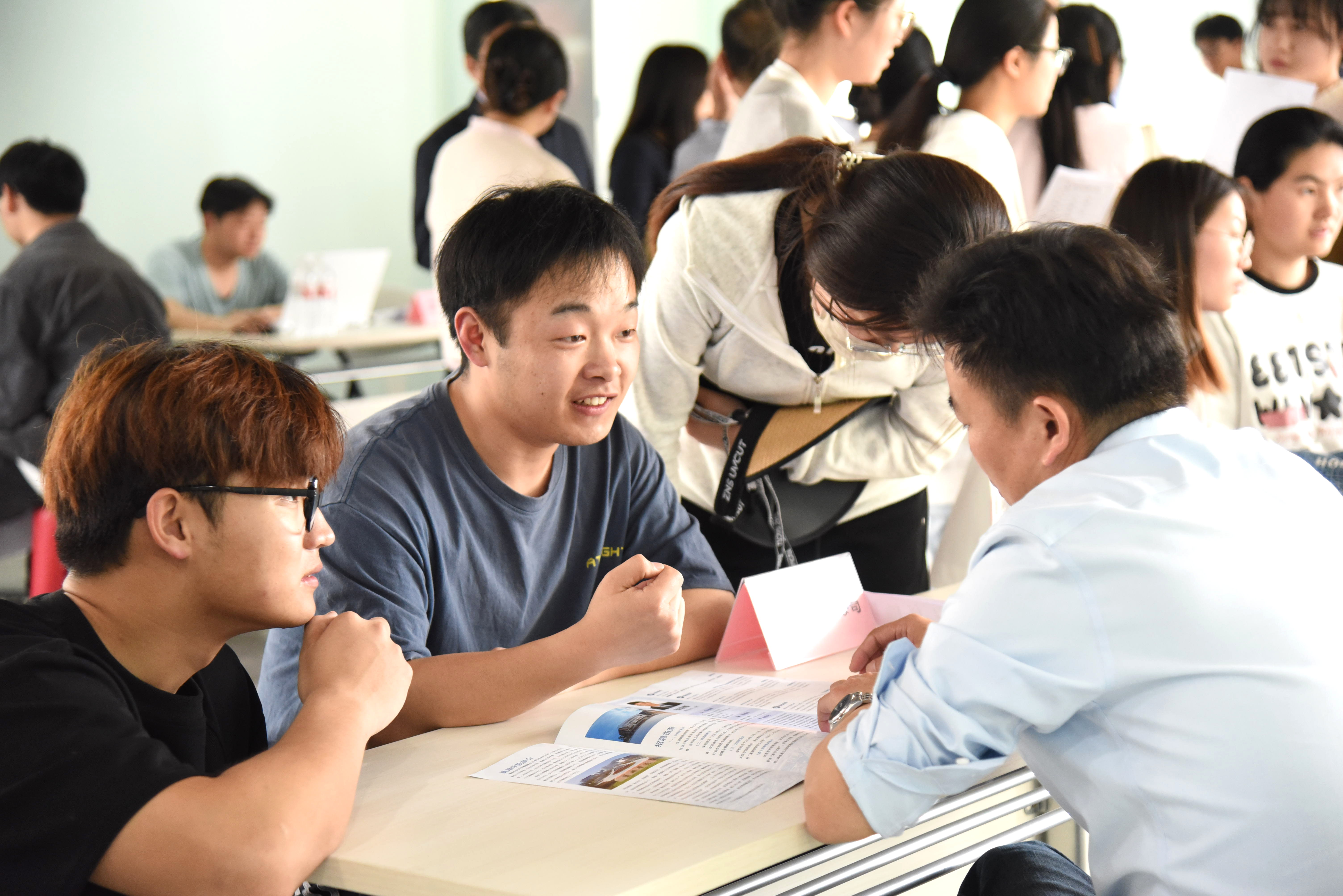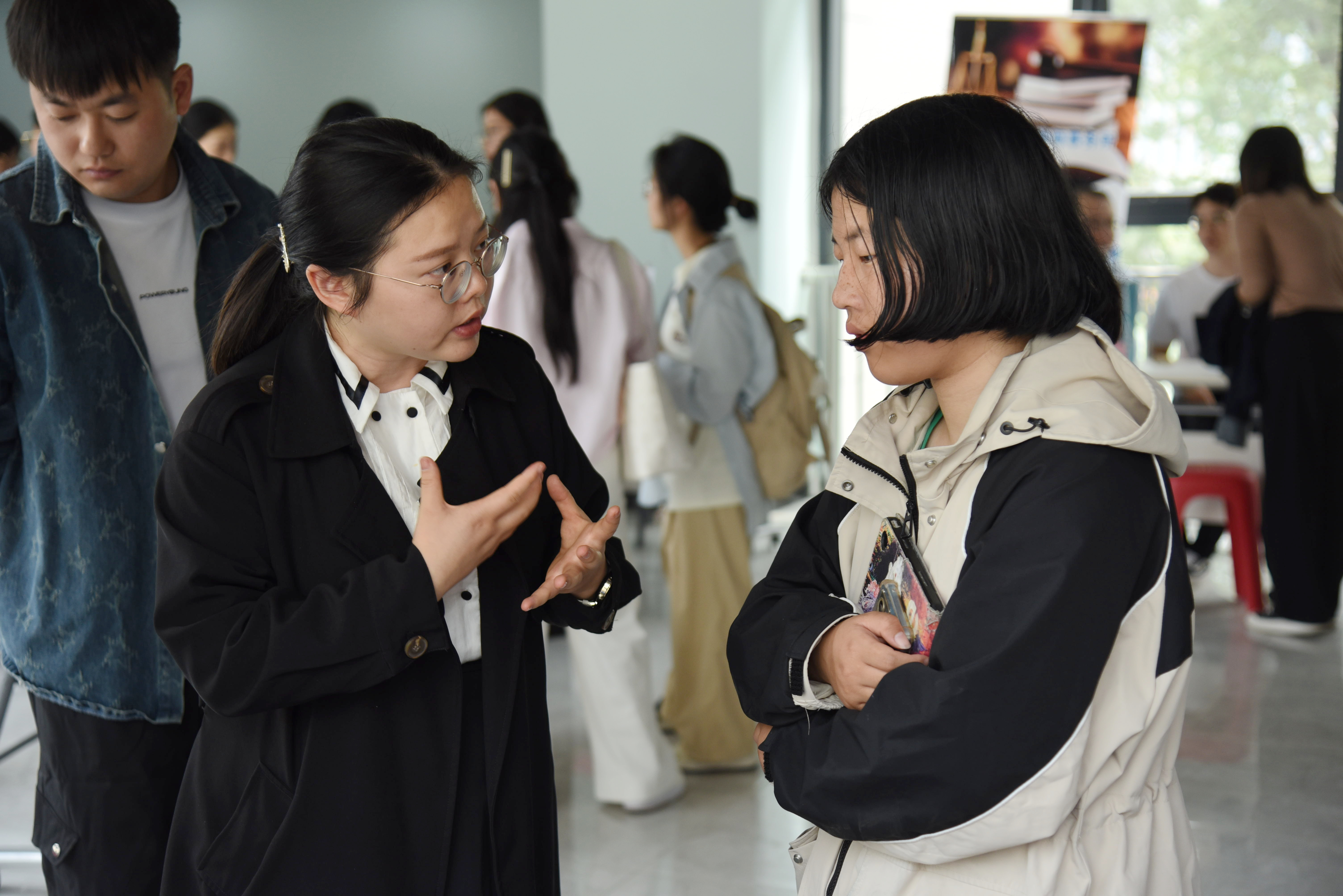 此次招聘活动校友企业带来开发工程师、产品经理、律师、教师及行政管理等600余个就业岗位,覆盖制造、信息、商贸、文旅、设计、教育等多个领域,需求岗位与毕业生专业匹配度高。招聘现场人头攒动、气氛热烈。毕业生们手持简历,在各个展位间来回穿梭,寻觅心仪岗位,认真浏览企业招聘岗位等相关信息,结合个人专业特长和兴趣爱好,积极投递简历,与企业招聘人员面对面交流。校友及招聘人员热情地向应聘学生介绍企业基本情况,说明岗位需求。不少毕业生围在校友企业家身旁,相见如故,积极请教经验、交流想法。招聘会现场还设置了企业服务台、就业咨询点,为参会企业及毕业生提供暖心周到服务。