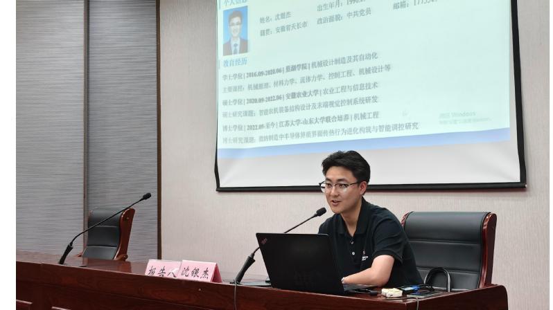 为发挥优秀校友的示范引领作用,激励广大学子奋发进取,5月17日下午,机械工程学院在致知楼报告厅举办优秀校友报告会。2020届校友、江苏大学机械工程学院博士生沈银杰应邀来校做校友报告。学院180余名学生到场参加,报告会由机械工程学院团委书记、校友工作联络员苏洁红主持。